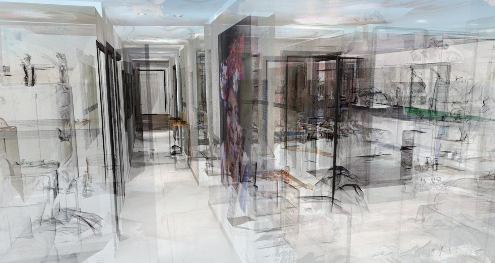 Les millions de points capturés donnent ainsi un nuage de points de la scène, nuage de point dans lequel il est possible de se promener et d'effectuer des mesures.